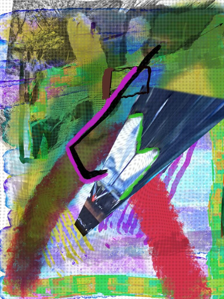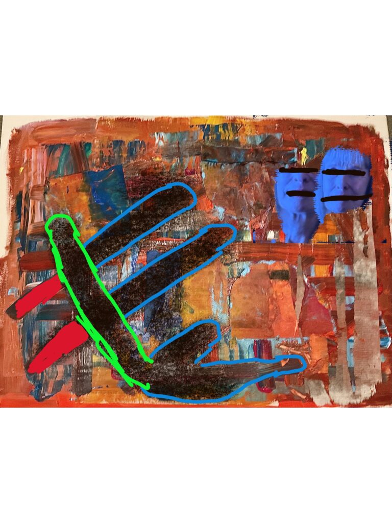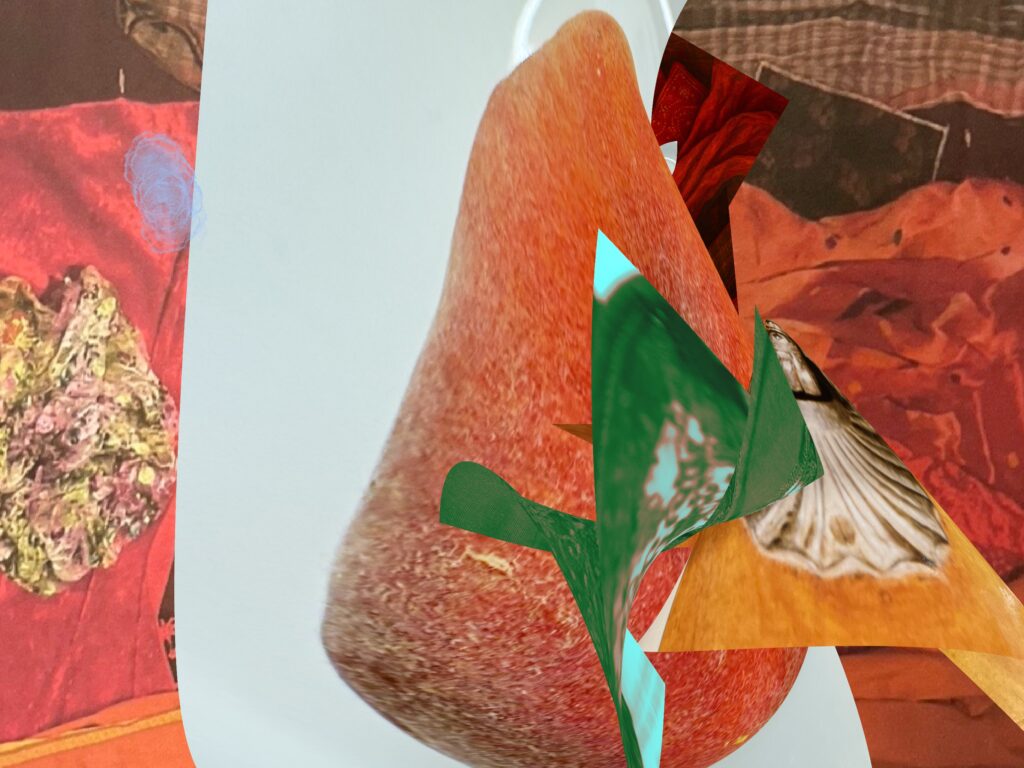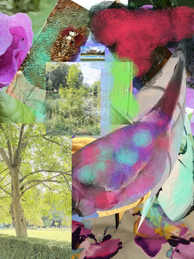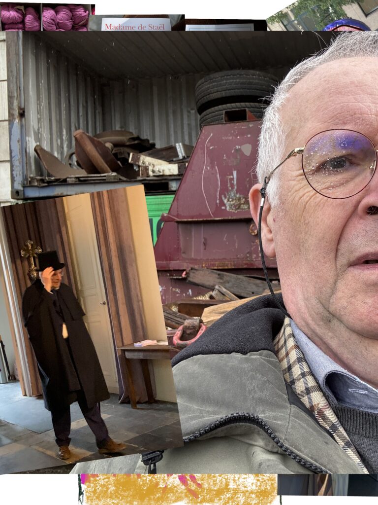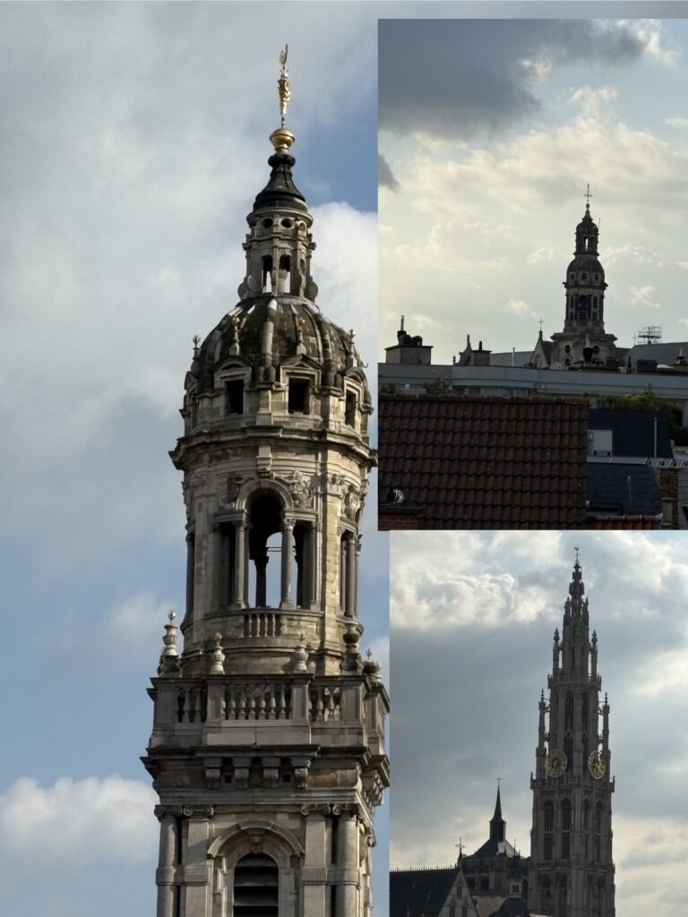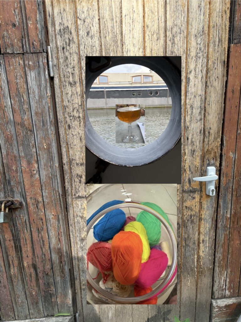De luchters zijn van hout. Het hout van de ene luchter is afkomstig uit een Trappistenabdij. Ik schilderde er abstracte vormen op. De houtsoort van de andere luchter is afvalhout. Ik schilderde er de kleuren en vormen op van groenten, daarom hangt hij in onze keuken. Beide luchters zijn gemaakt in samenwerking met onze zonen.