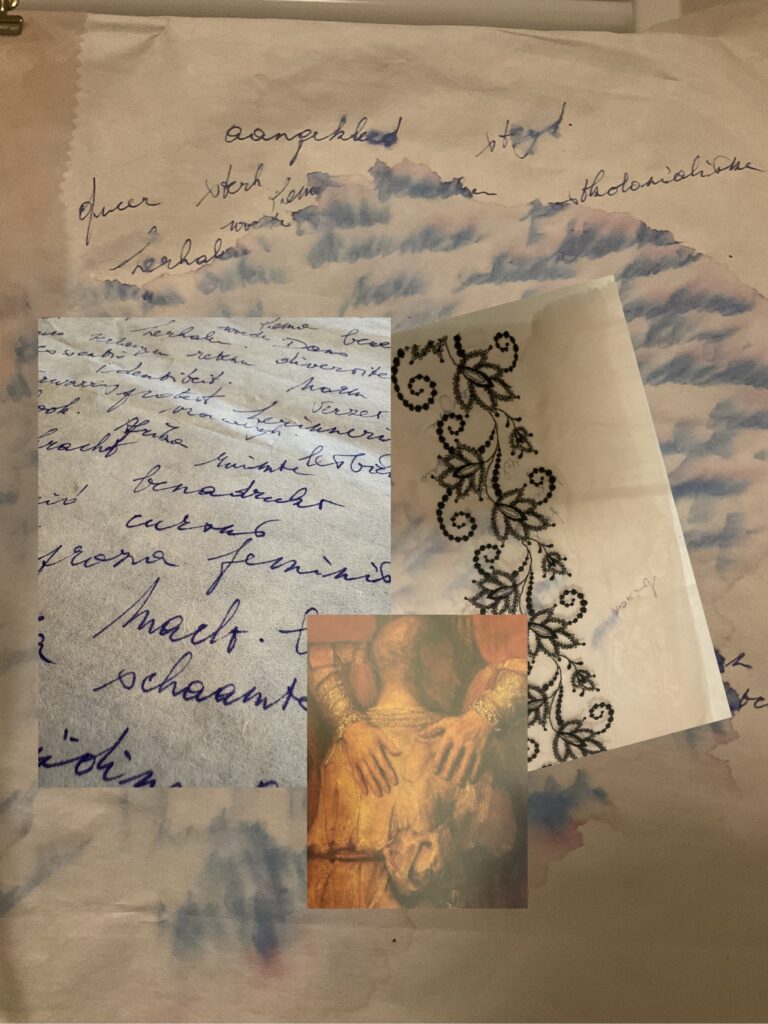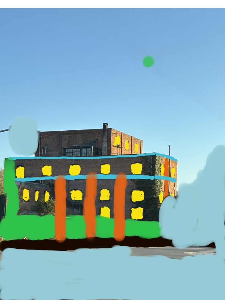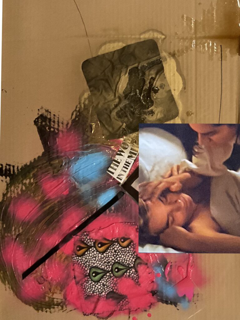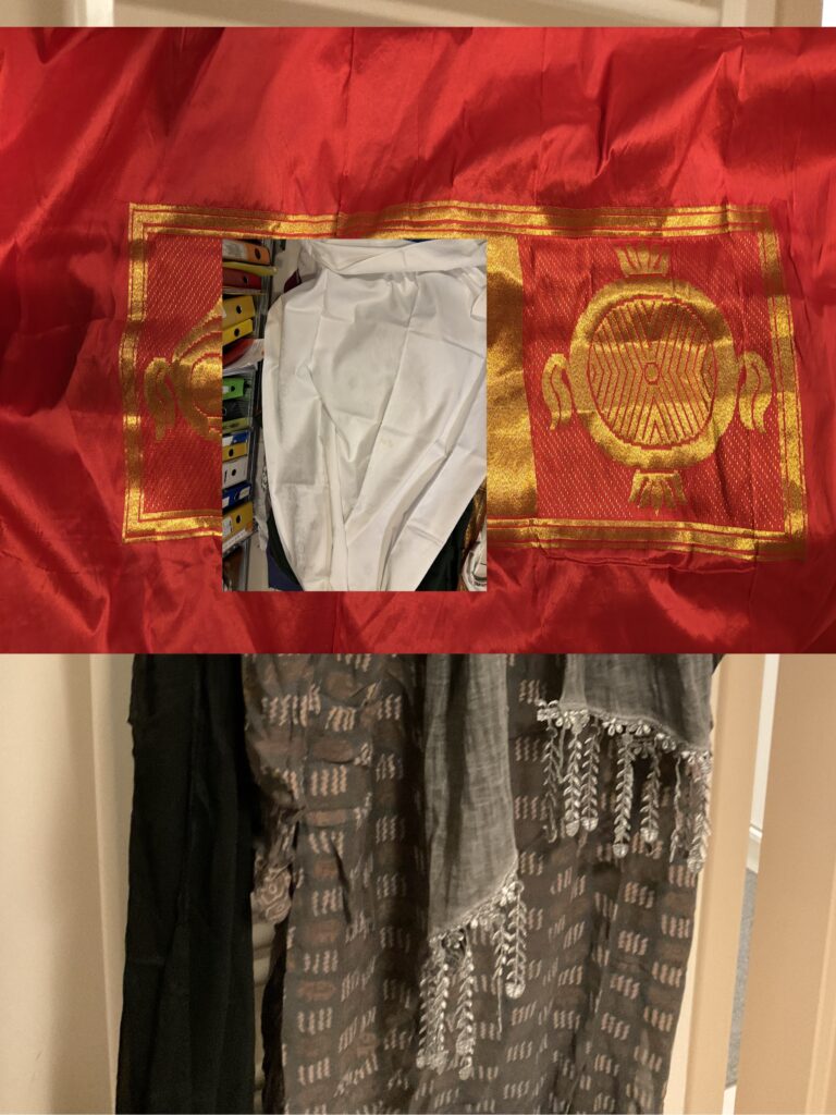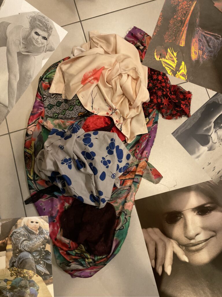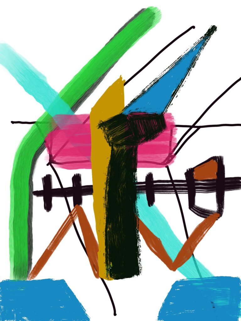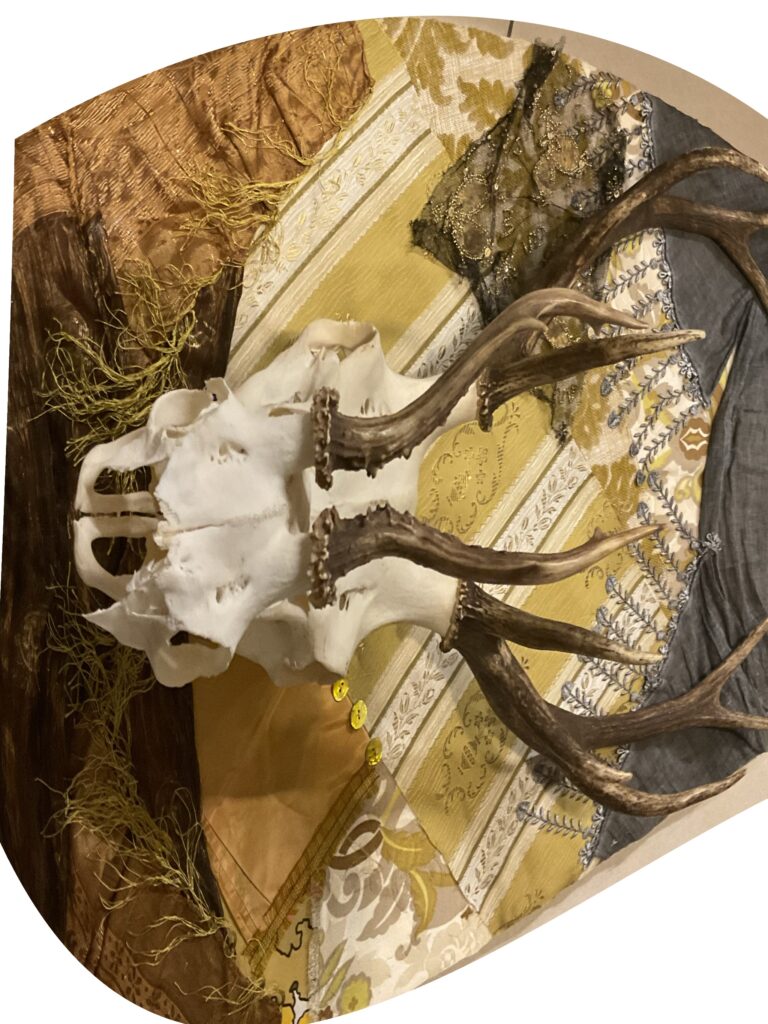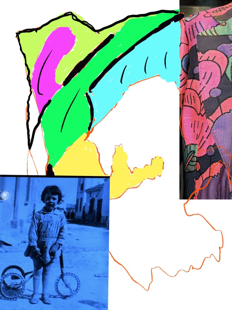 De luchters zijn van hout. Het hout van de ene luchter is afkomstig uit een Trappistenabdij. Ik schilderde er abstracte vormen op. De houtsoort van de andere luchter is afvalhout. Ik schilderde er de kleuren en vormen op van groenten, daarom hangt hij in onze keuken. Beide luchters zijn gemaakt in samenwerking met onze zonen.