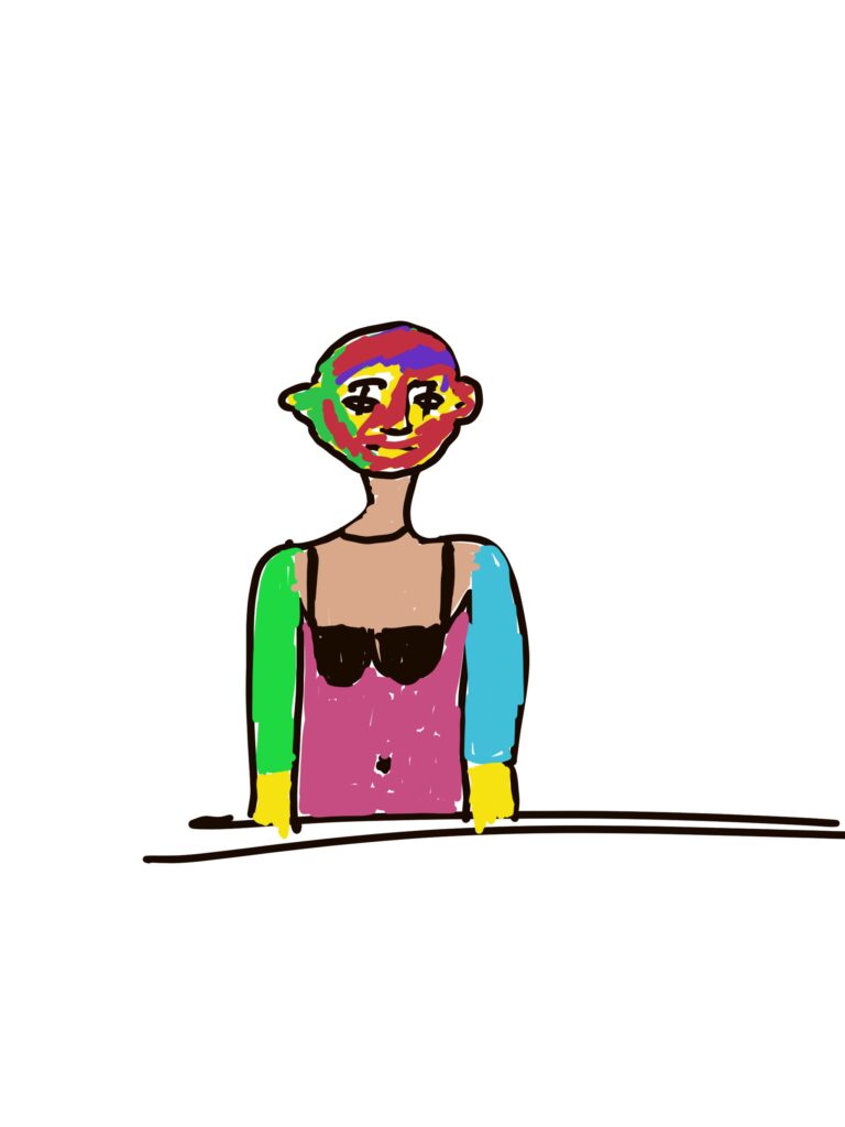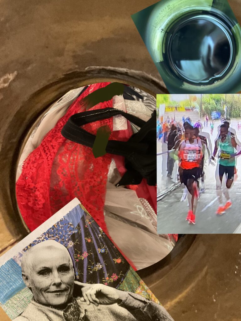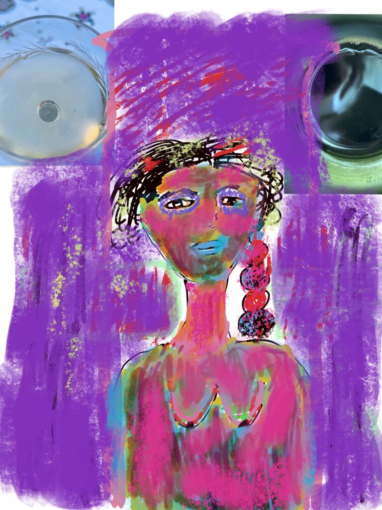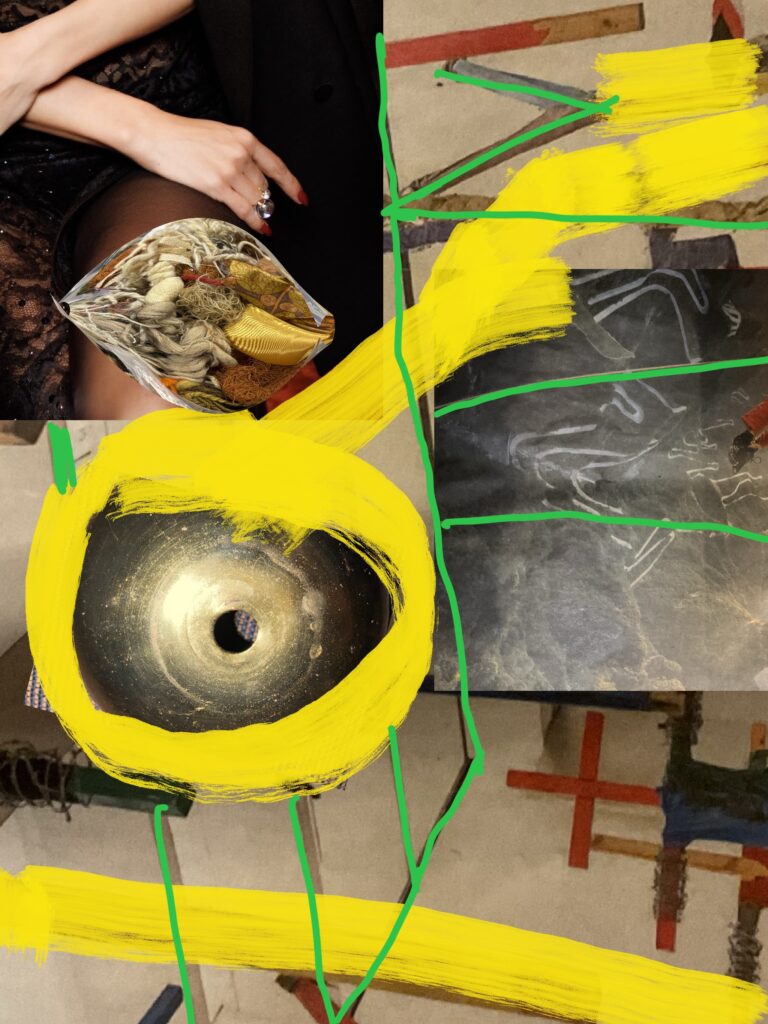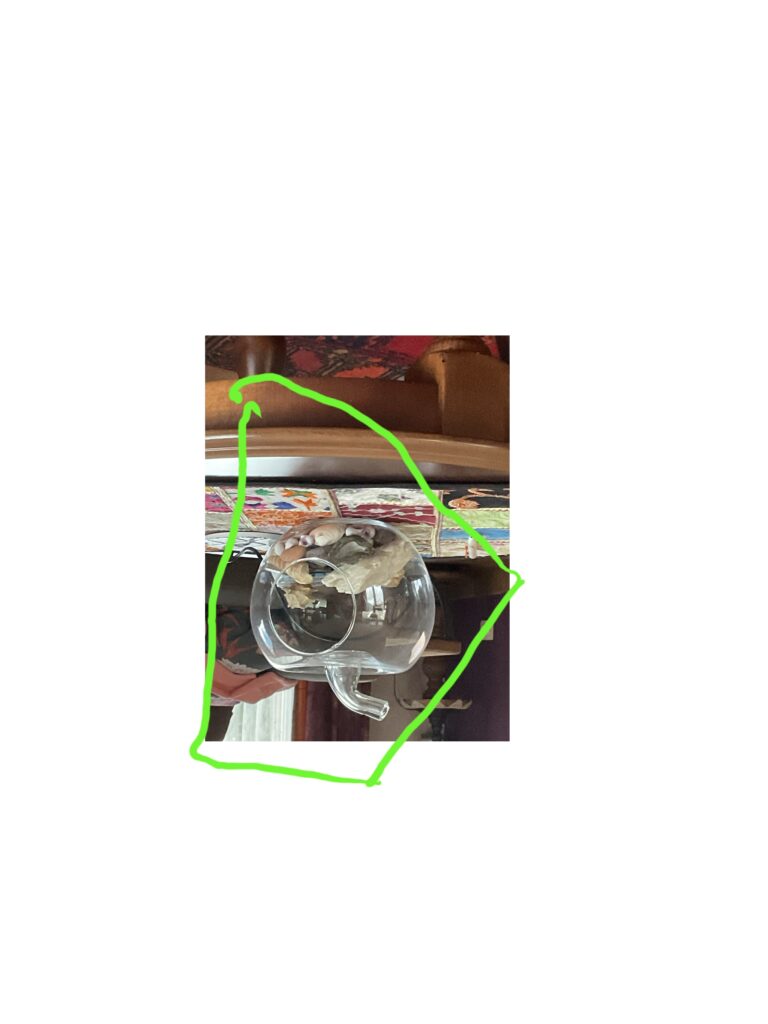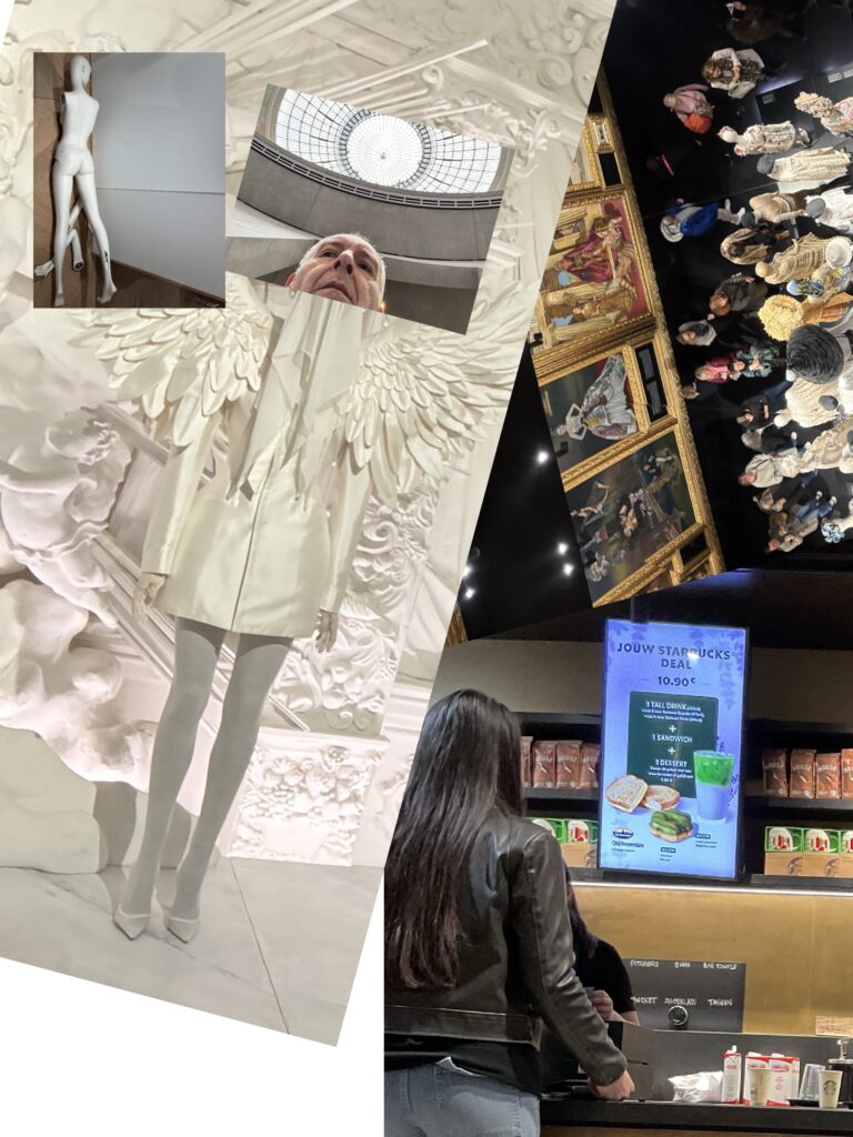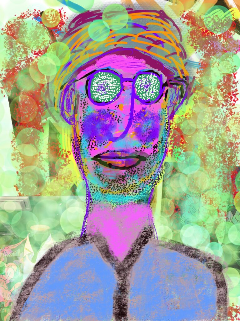 De luchters zijn van hout. Het hout van de ene luchter is afkomstig uit een Trappistenabdij. Ik schilderde er abstracte vormen op. De houtsoort van de andere luchter is afvalhout. Ik schilderde er de kleuren en vormen op van groenten, daarom hangt hij in onze keuken. Beide luchters zijn gemaakt in samenwerking met onze zonen.