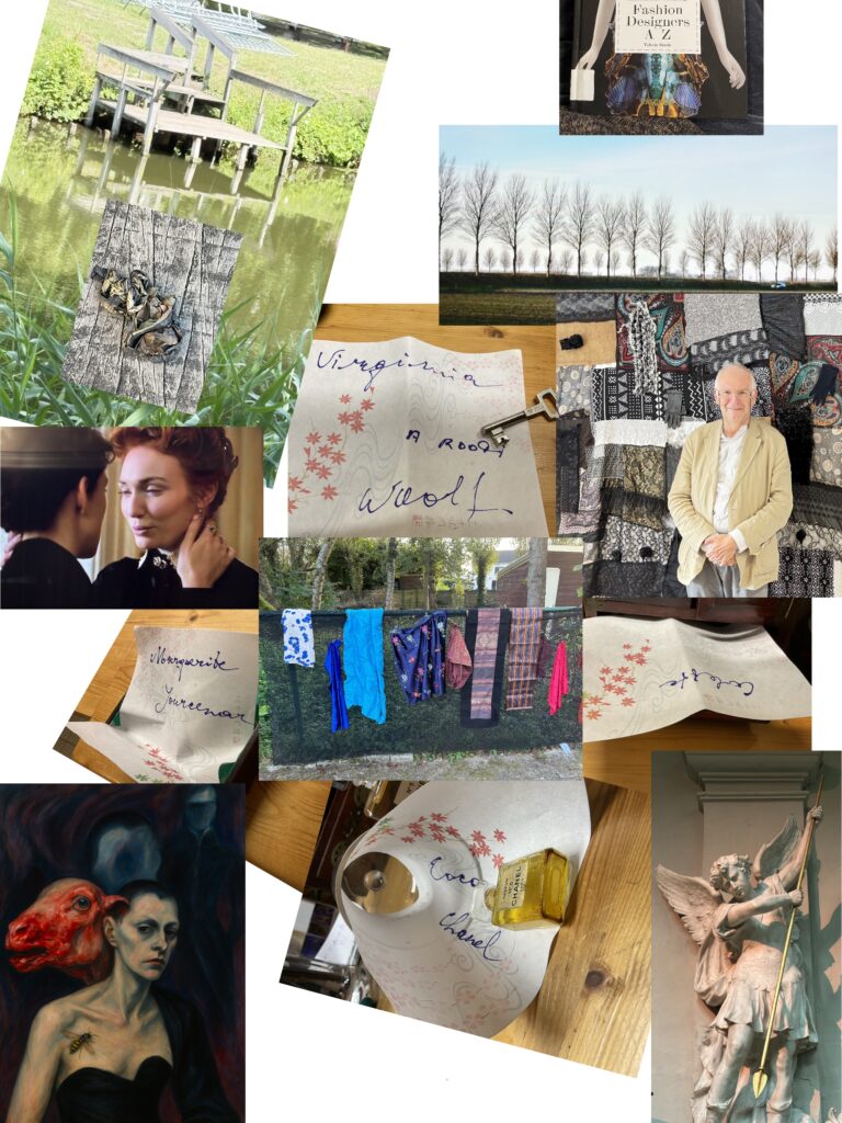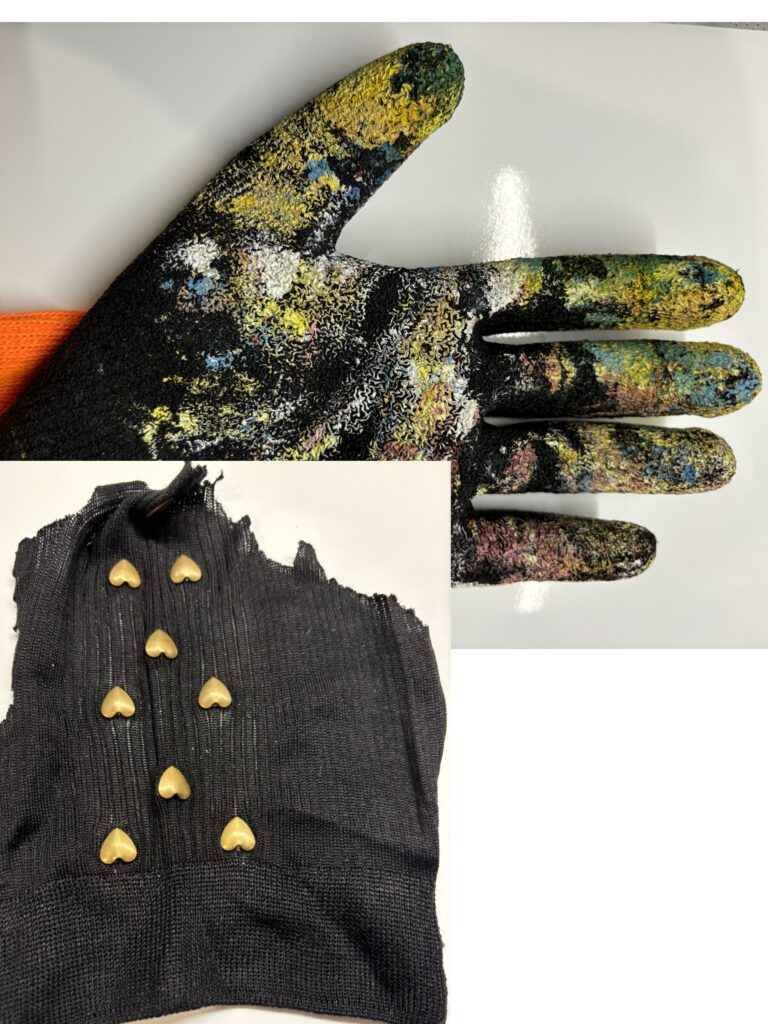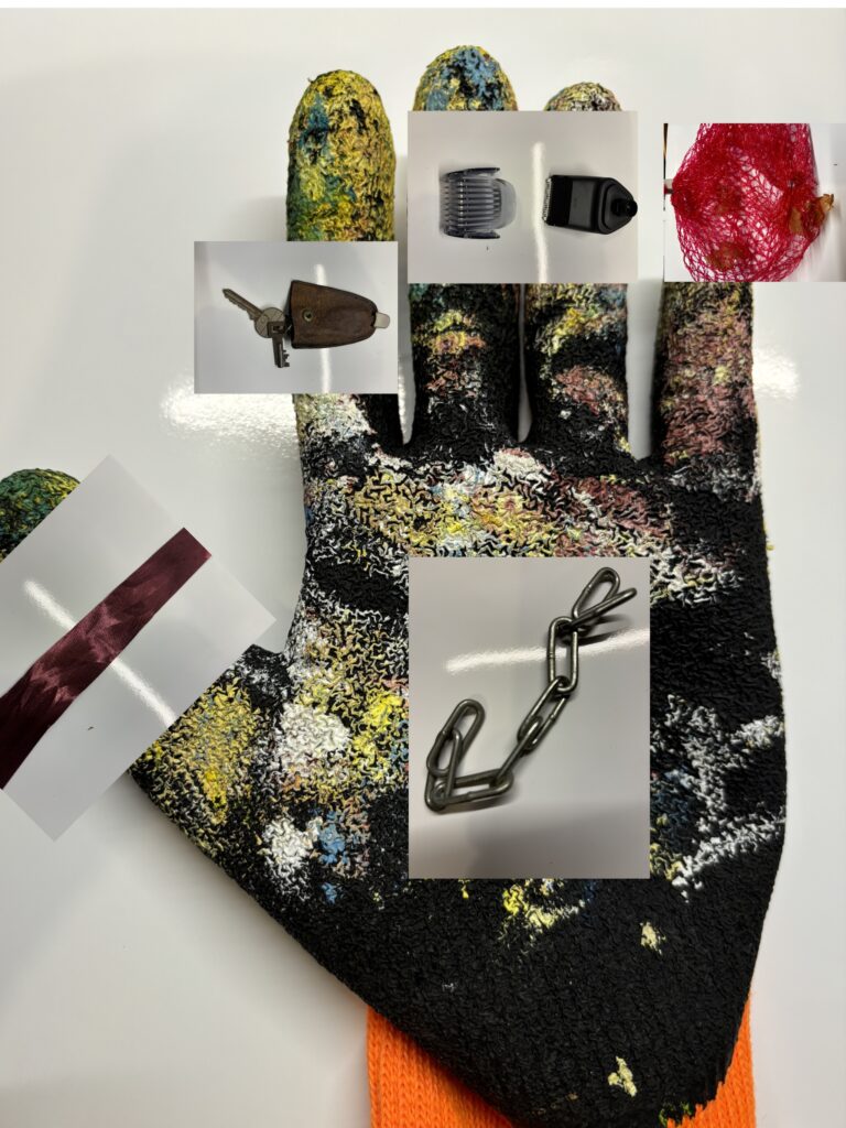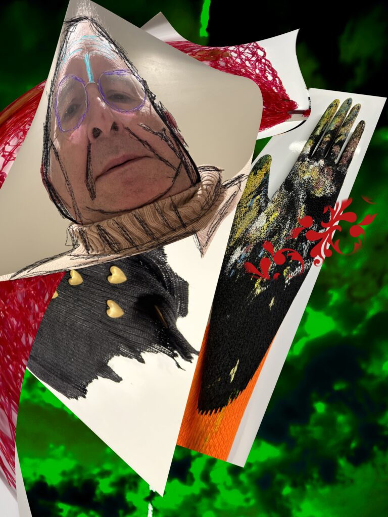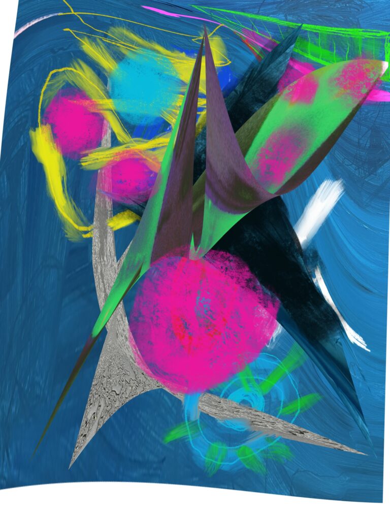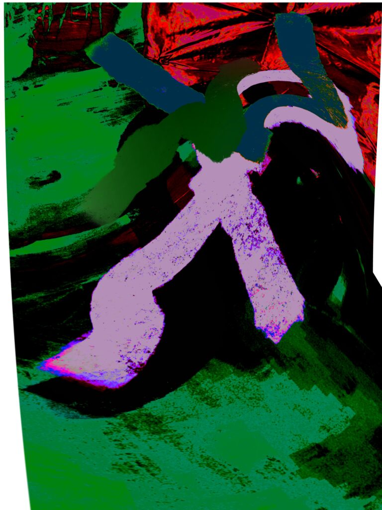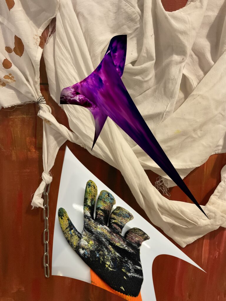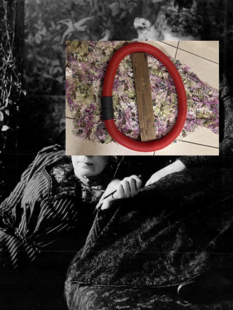 De luchters zijn van hout. Het hout van de ene luchter is afkomstig uit een Trappistenabdij. Ik schilderde er abstracte vormen op. De houtsoort van de andere luchter is afvalhout. Ik schilderde er de kleuren en vormen op van groenten, daarom hangt hij in onze keuken. Beide luchters zijn gemaakt in samenwerking met onze zonen.