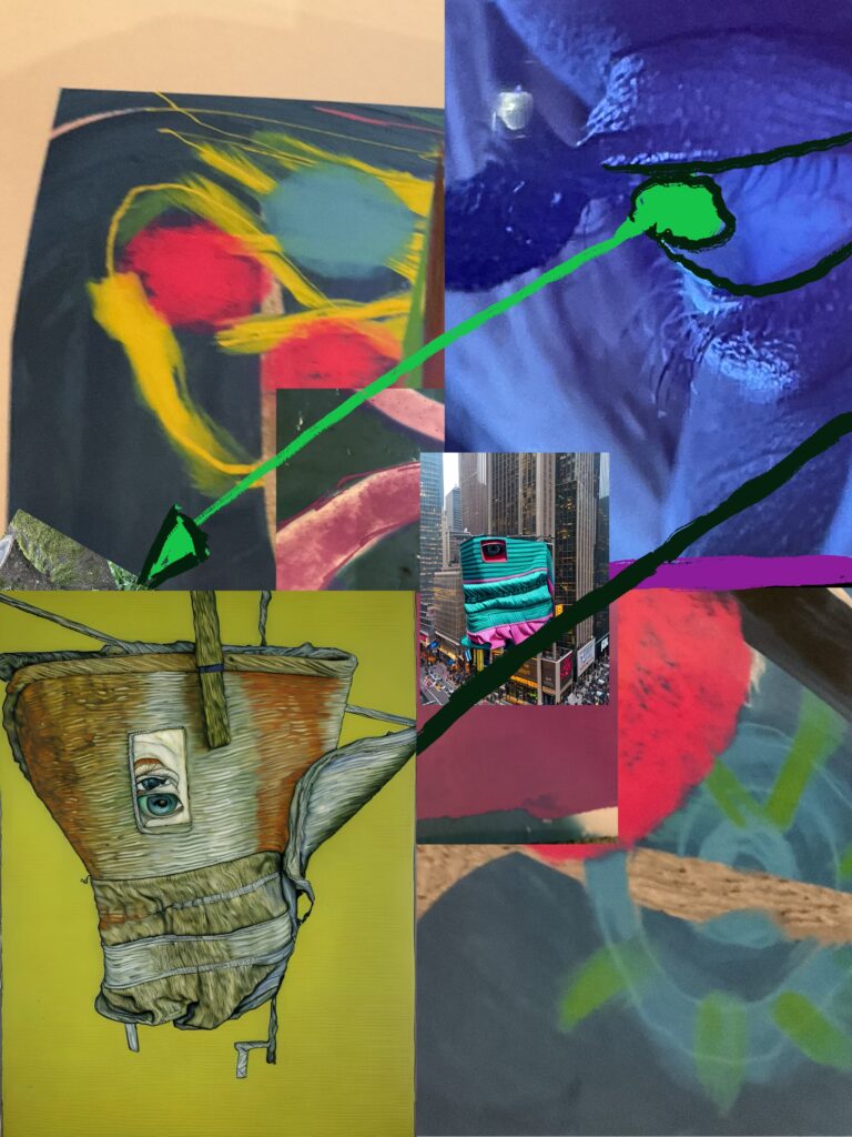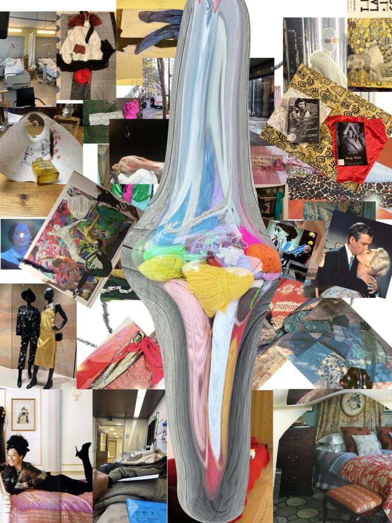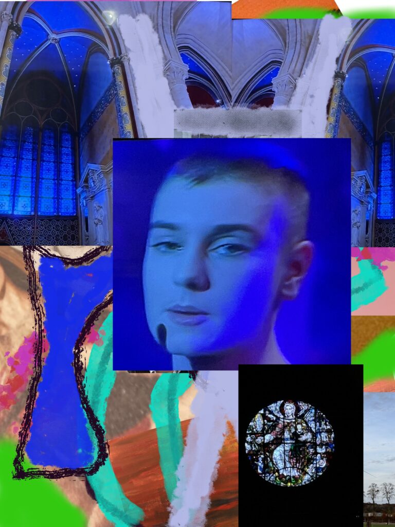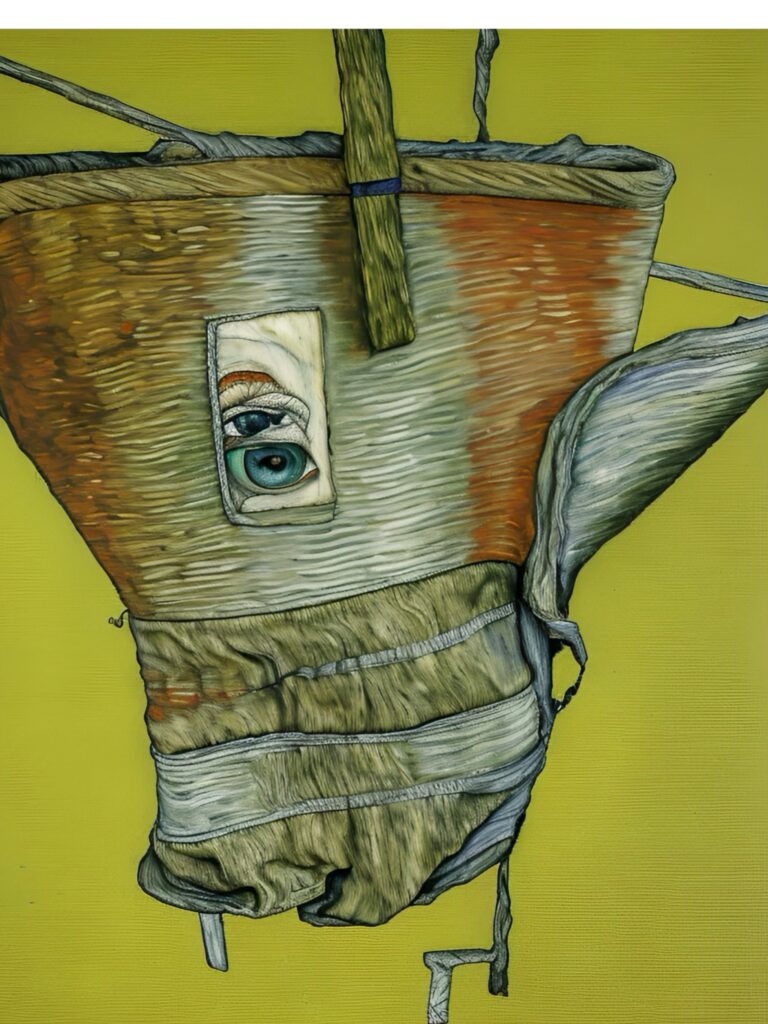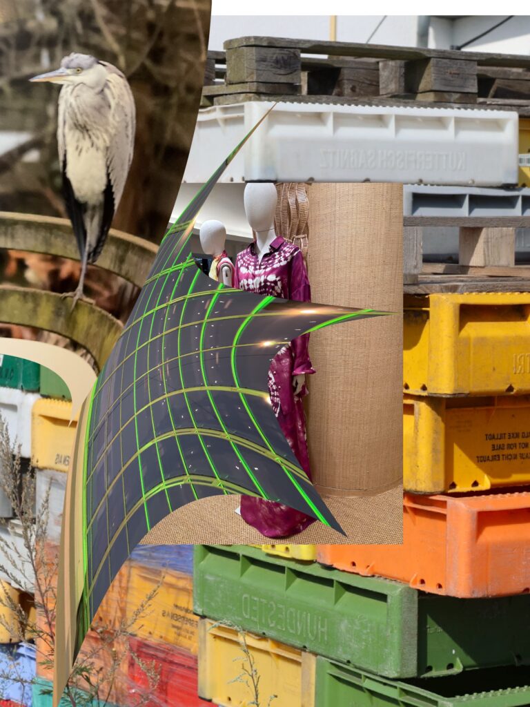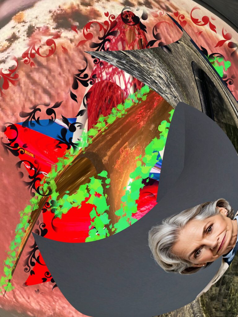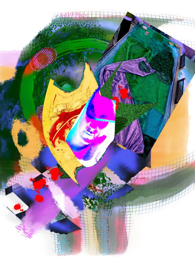 De luchters zijn van hout. Het hout van de ene luchter is afkomstig uit een Trappistenabdij. Ik schilderde er abstracte vormen op. De houtsoort van de andere luchter is afvalhout. Ik schilderde er de kleuren en vormen op van groenten, daarom hangt hij in onze keuken. Beide luchters zijn gemaakt in samenwerking met onze zonen.