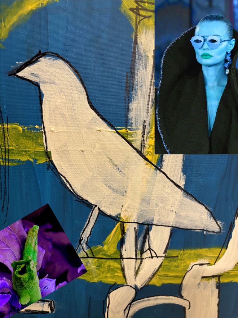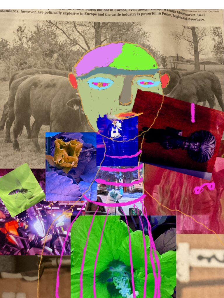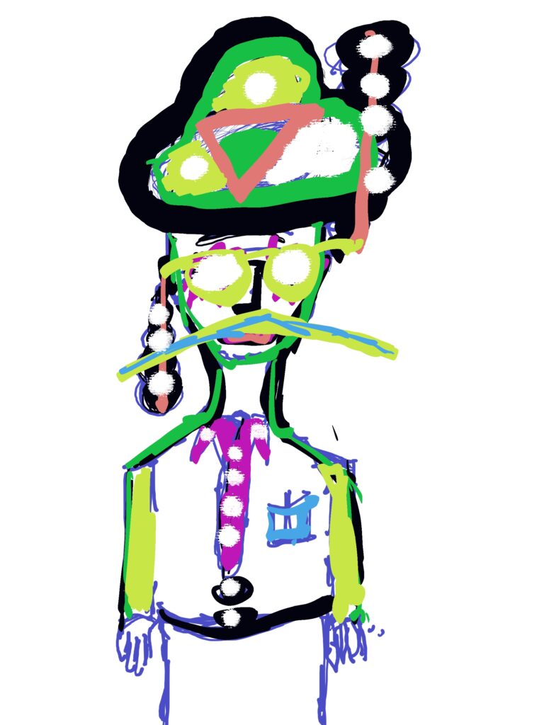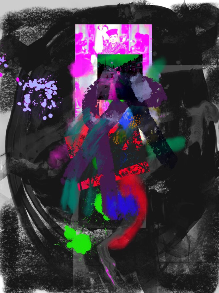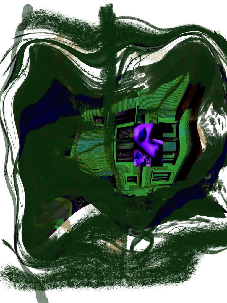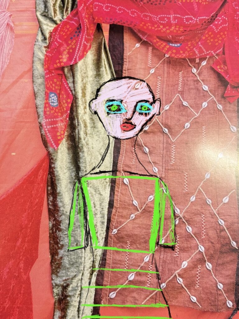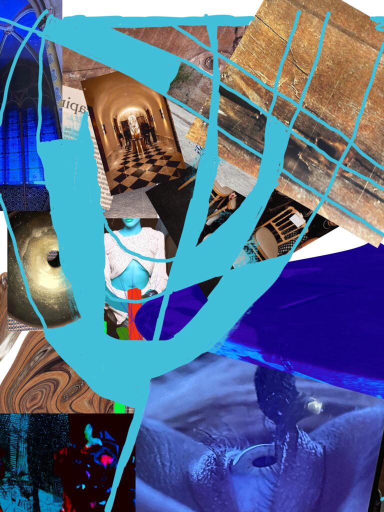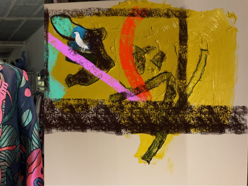 De luchters zijn van hout. Het hout van de ene luchter is afkomstig uit een Trappistenabdij. Ik schilderde er abstracte vormen op. De houtsoort van de andere luchter is afvalhout. Ik schilderde er de kleuren en vormen op van groenten, daarom hangt hij in onze keuken. Beide luchters zijn gemaakt in samenwerking met onze zonen.